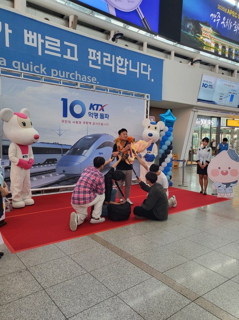저번에 서울역에서 사람들이 모여있길래 흥미진진한 싸움이라도 벌어진 줄 알았지만 아쉽게도 공식 행사가 진행되고 있었다. 벌써 KTX 이용자가 10억명을 넘었다는데, 그동안 나도 이용자 수를 늘리는데 약간의 지분은 있다고 생각한다.