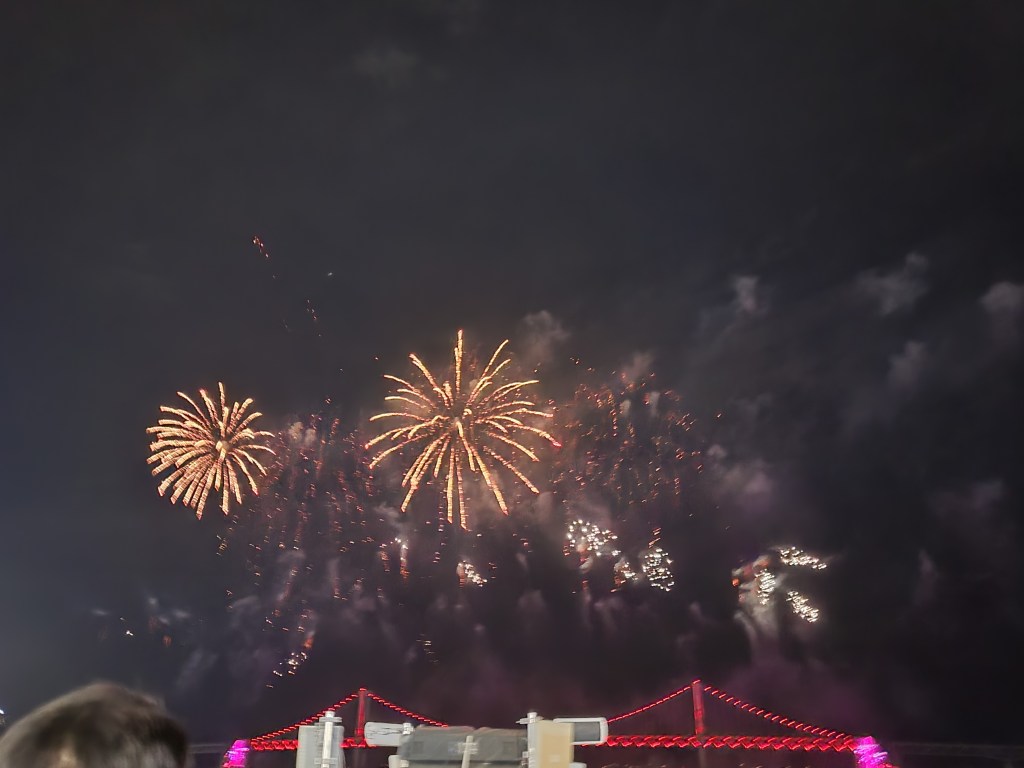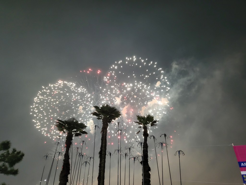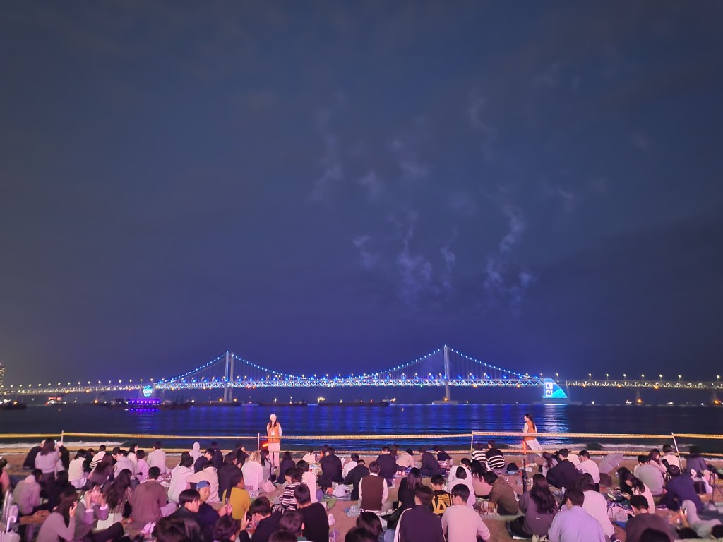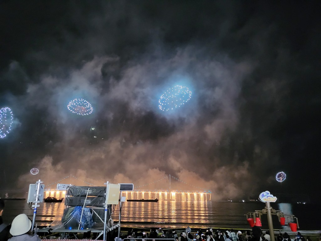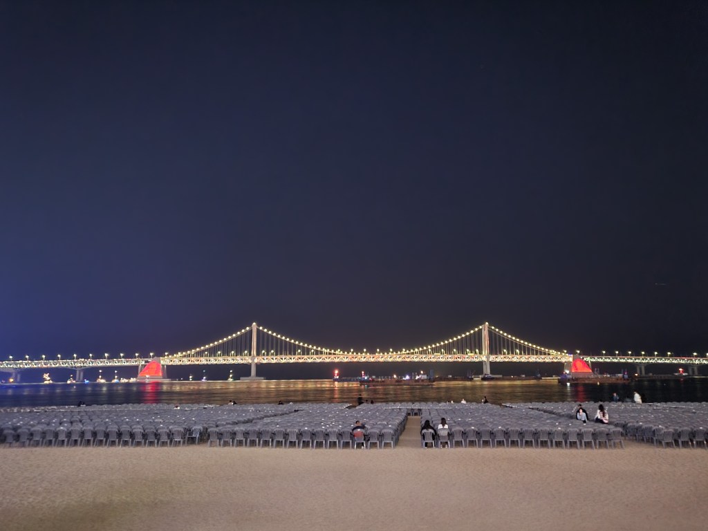 불꽃축제 전날 평화로운 광안리의 모습. 돈 내고 플라스틱 의자에 앉아서 보는 사람을 위한 자리인 것 같았다드디어 불꽃놀이 당일! 불꽃놀이 시작 전 돗자리 펴고 노는 사람들의 모습. 아 나도 진작 돗자리 챙겨가서 편하게 먹고 놀면서 볼 걸 그랬다불꽃놀이 시작은 소박하게🎇광안대교에서 폭포수 흘러내리듯 폭죽이 오르락내리락 터지기도 하고 1부가 끝나고🎆2부도 끝났다🧨🧨이건 앵콜 폭죽🎉
