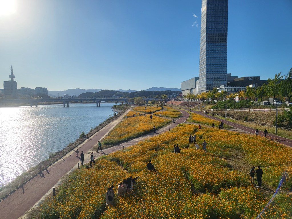 이유는 알 수 없지만 입장할 때 종이팔찌를 착용하라고 했다. 갑자기 락페 느낌이 났다🕺우주 영화 어딘가에서 사용된 소품이라고 한다. 그런데 왜 우주복을 이렇게 하얗게 만드는걸까 우주에서 빨래하기도 어려울텐데🤷♀️꿈돌이는 언제 어디서 봐도 귀엽다😍라운지에서 보스턴다이나믹스 로봇이 움직이면서 어린이들의 주목을 끌고 있었다. 날씨가 정말 좋았다. 가을 초입에 피는 꽃들의 색깔도 예뻤고.야외에는 꿈돌이의 형상만 앙상하게 남아있었다. 과학체험하러 온 어린이들에게 기가 다 빨려버린 듯 하다.